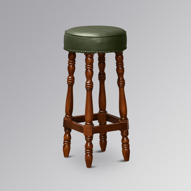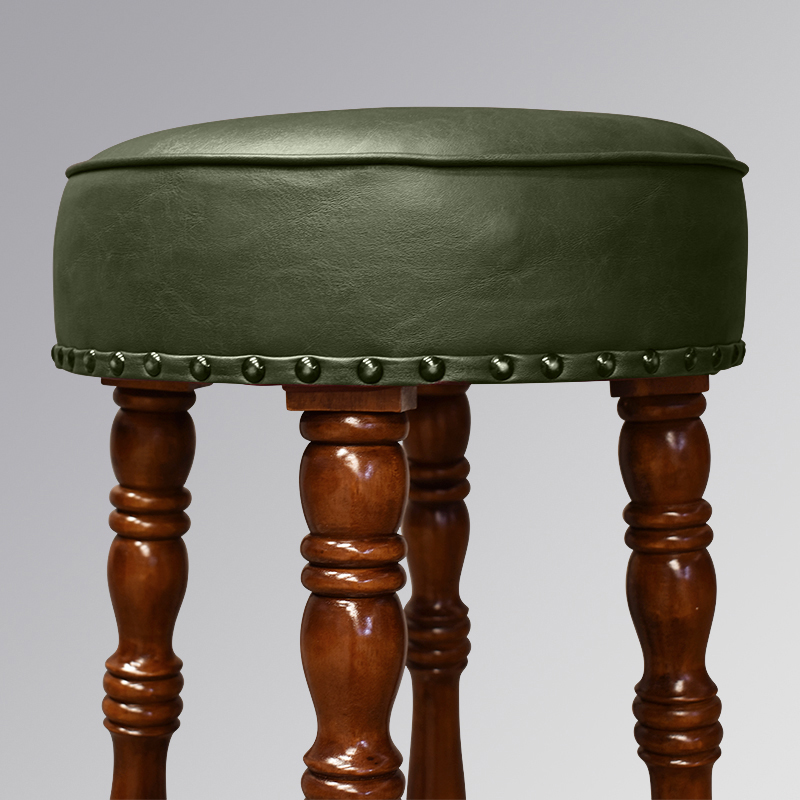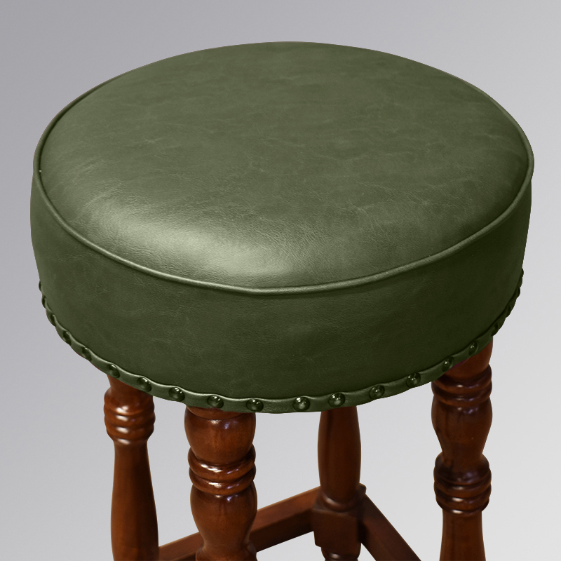 Saloon Bar Stool in Chestnut Colour & Green Faux Leather